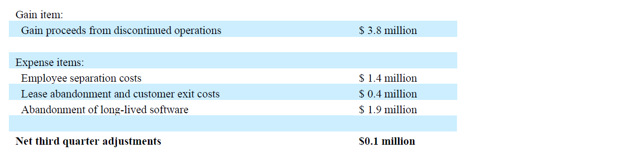 Mr. Parker continued, “The third quarter included approximately $0.1 million in net items that have been excluded from adjusted financial results. Among these items was a $3.8 million gain from discontinued operations relating to a litigation settlement associated with our factoring business that was exited in 2020. Offsetting this gain was $3.7 million of expenses in severance and abandonment of certain underutilized leased facilities and systems related to exiting a large Managed Freight contract and the planned exit of legacy Dedicated contracts not providing sufficient returns. While these decisions were difficult and created a cost headwind in the quarter, we believe they needed to be made to improve the long-term cost profile of the Company. A detail of these costs is summarized in the table below.”