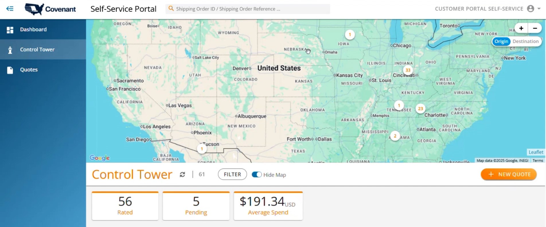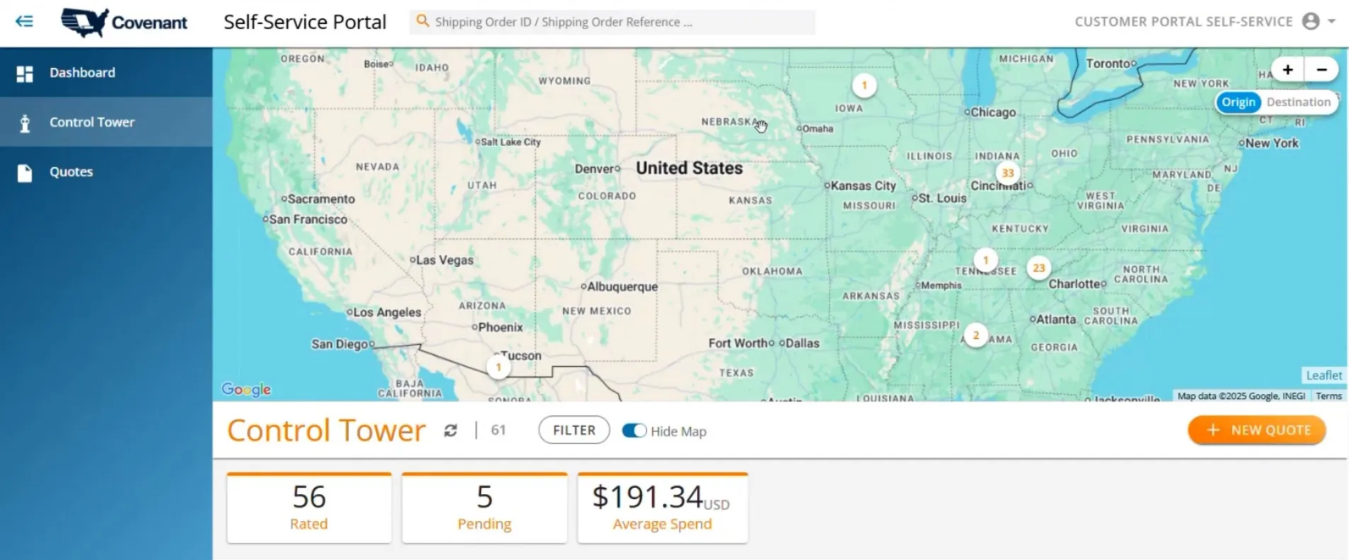 Rate2Ship is a secure online LTL quoting tool within the Covenant Self-Service Portal. It centralizes rate comparison, execution, and visibility — supported by Covenant’s national logistics network and expert service teams.